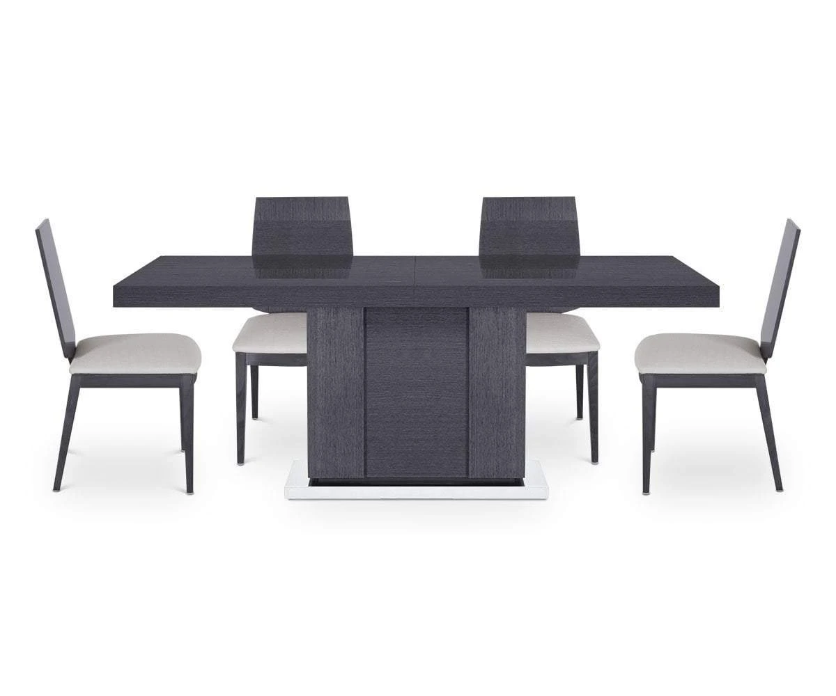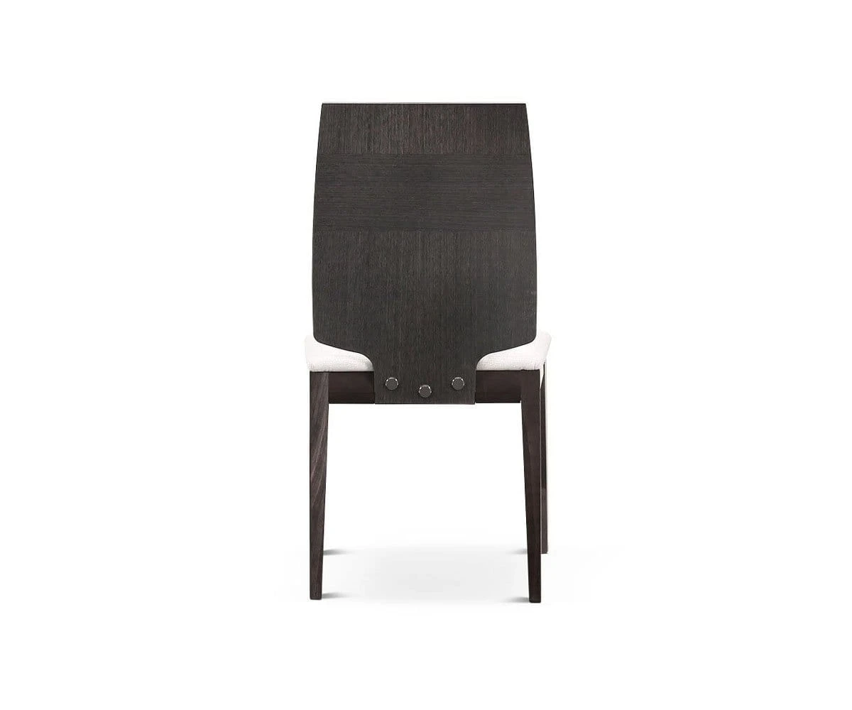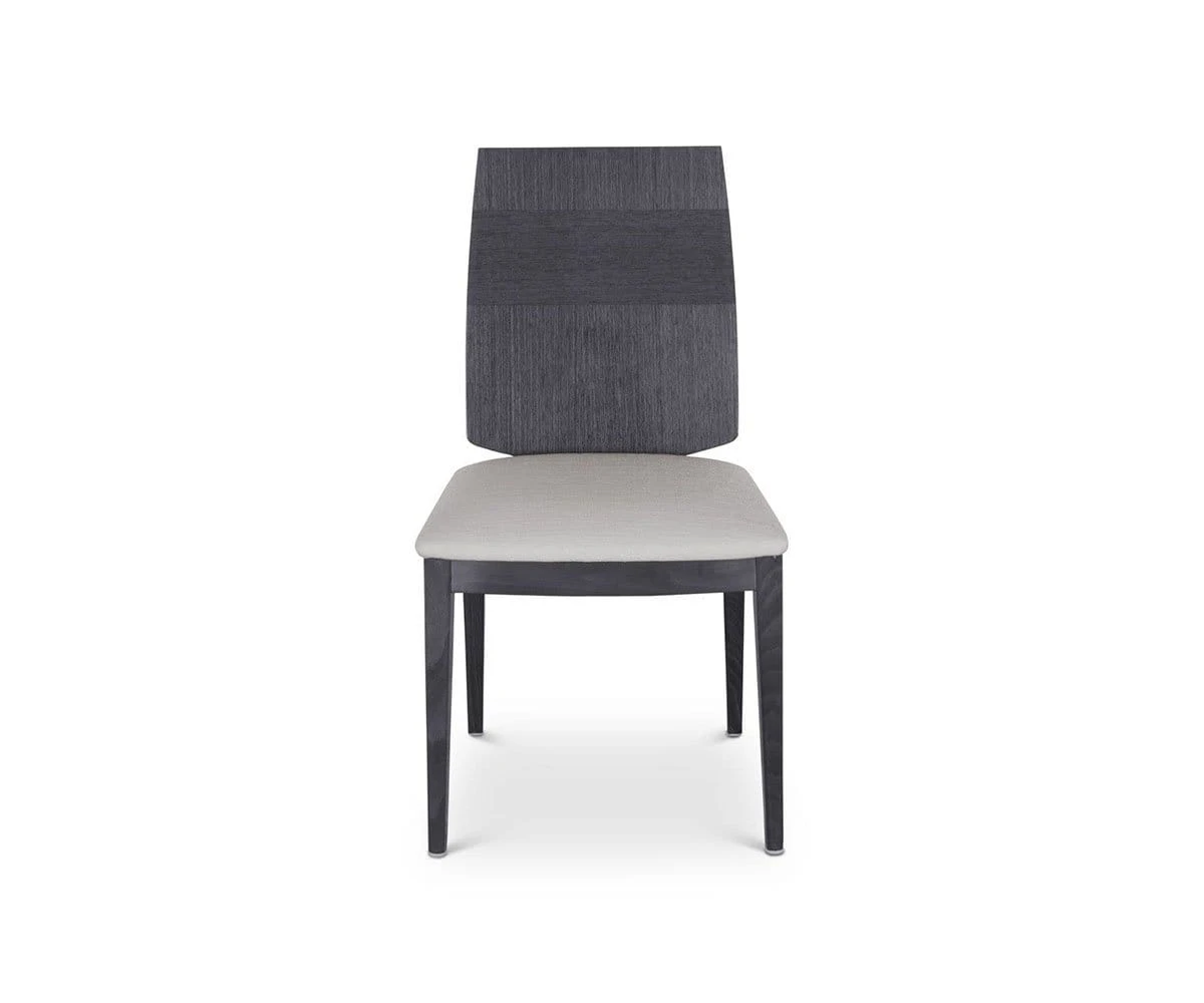 Making a bold statement, the Mondiana Wood Back Dining Chair features a comfortable padded fabric seat that provides a striking contrast to the gray koto veneer frame in a high gloss finish.