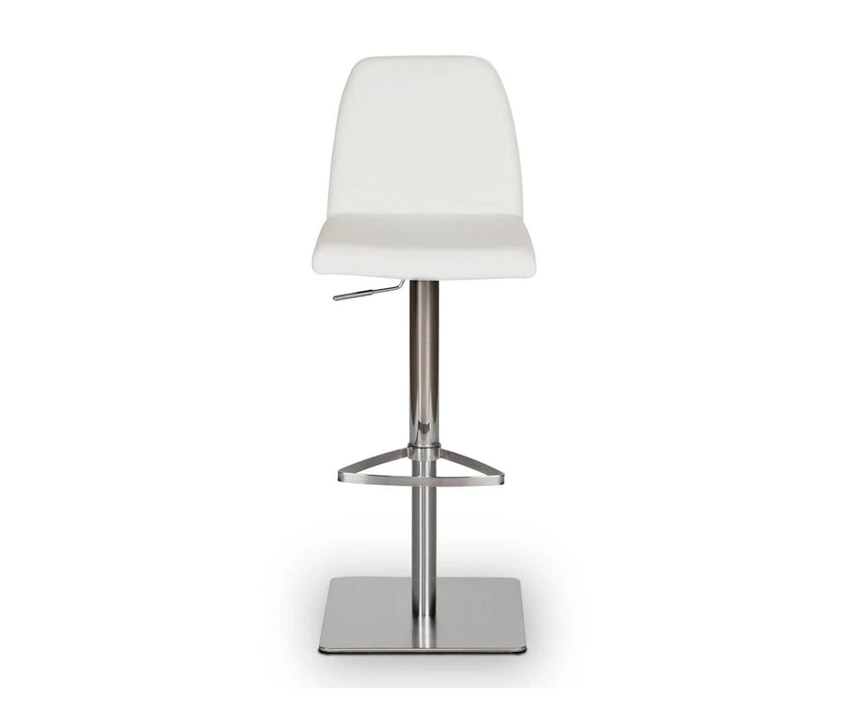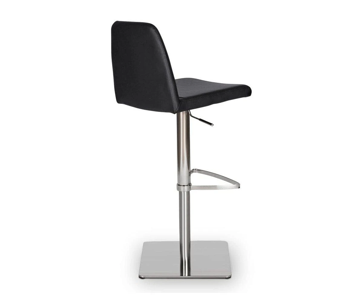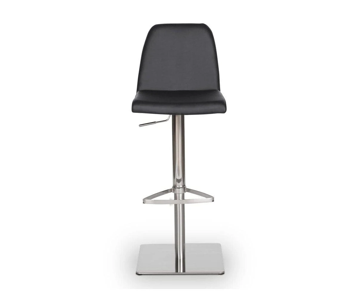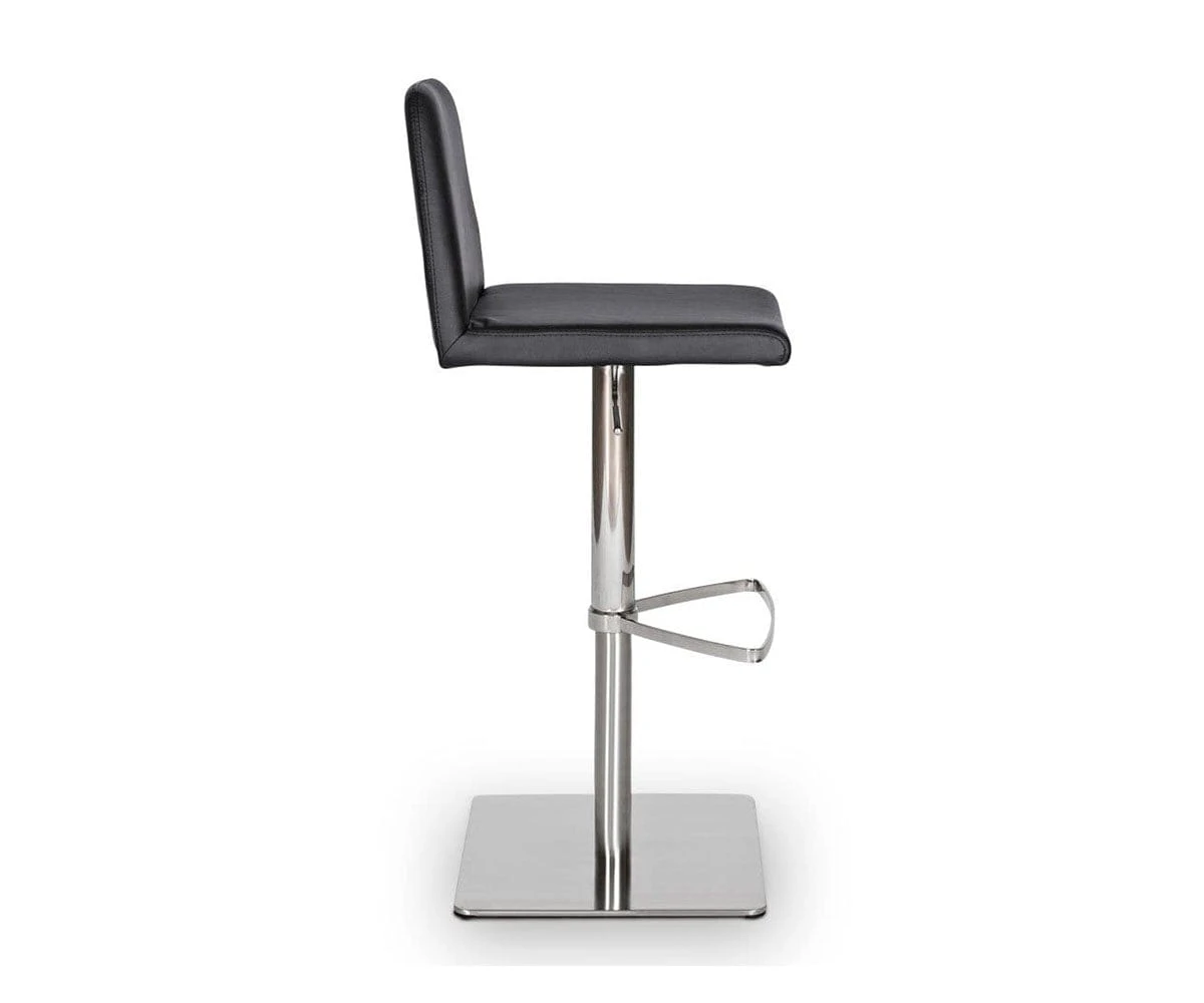 Classic comfort and minimalist modern style define the Amagi Adjustable Counter and Bar Stool pairing a nickel-plated metal and brushed stainless steel base with an understated seat cushion and back.