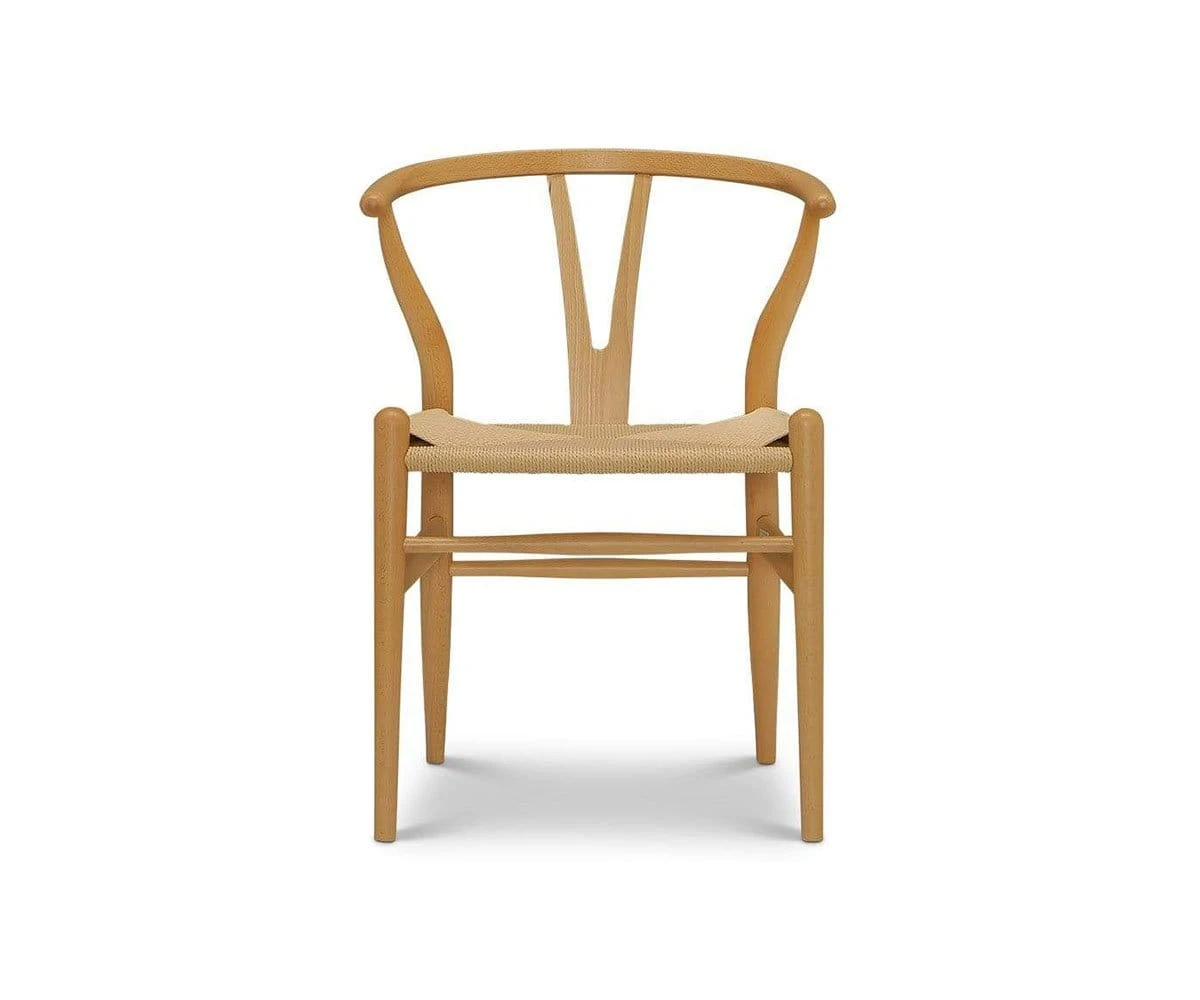 The Filip Wishbone Dining Chair is a classic Scandinavian piece that lends your room a natural feel. Crafted from solid beechwood, this easily-recognized chair features a graceful bentwood back that curves into subtle, comfortable arms. The iconic wishbone-inspired backrest is flanked by sinuous back supports that taper into sturdy legs. Finished with a woven paper-cord seat, this chair boasts a modern silhouette that has stood the test of time.