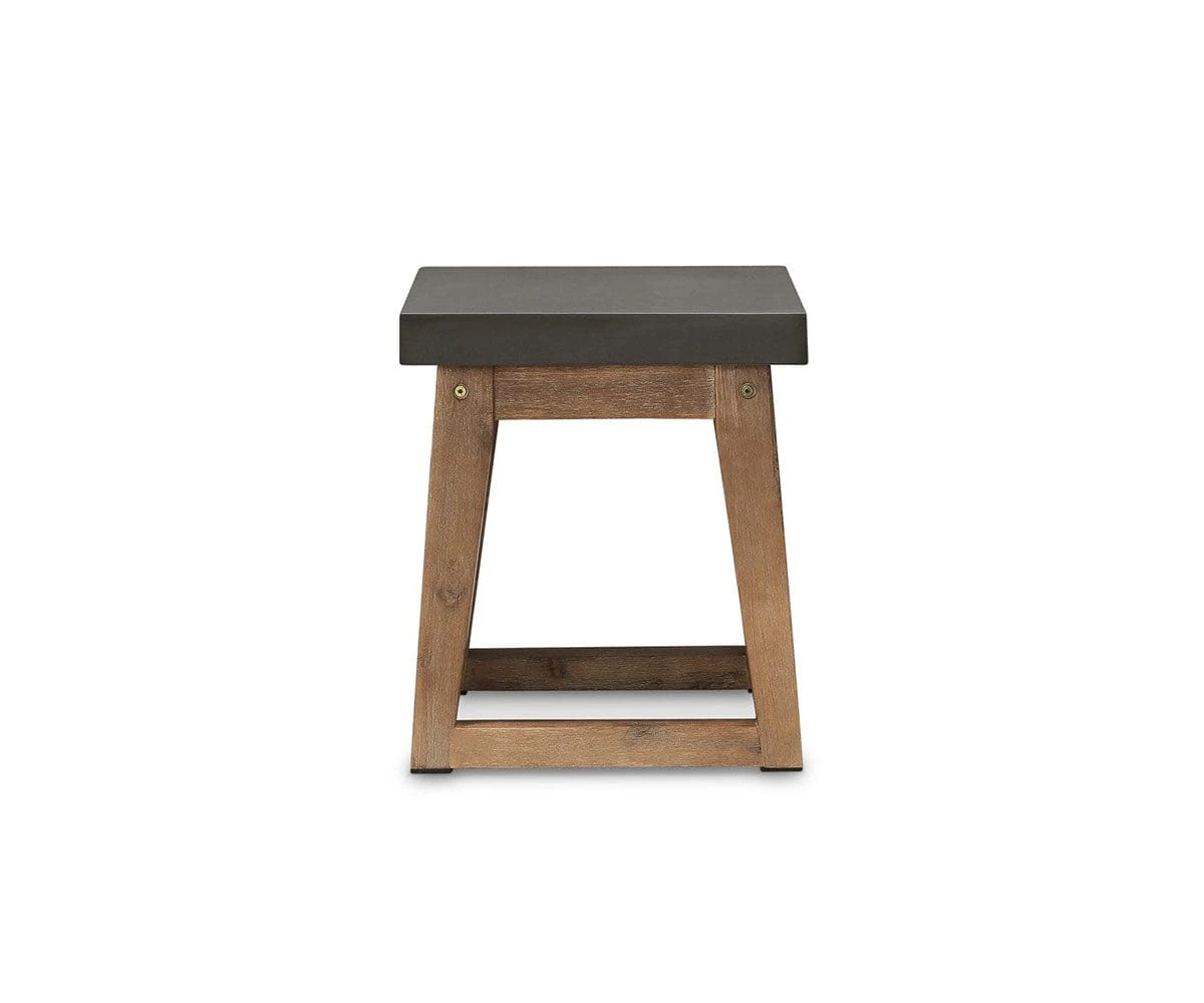 The Atlas Dining Stool is made with solid acacia wood legs and a faux-cement composite tabletop. The pairing is modern, minimalist and elegant. Enjoy this stool outdoors or inside.