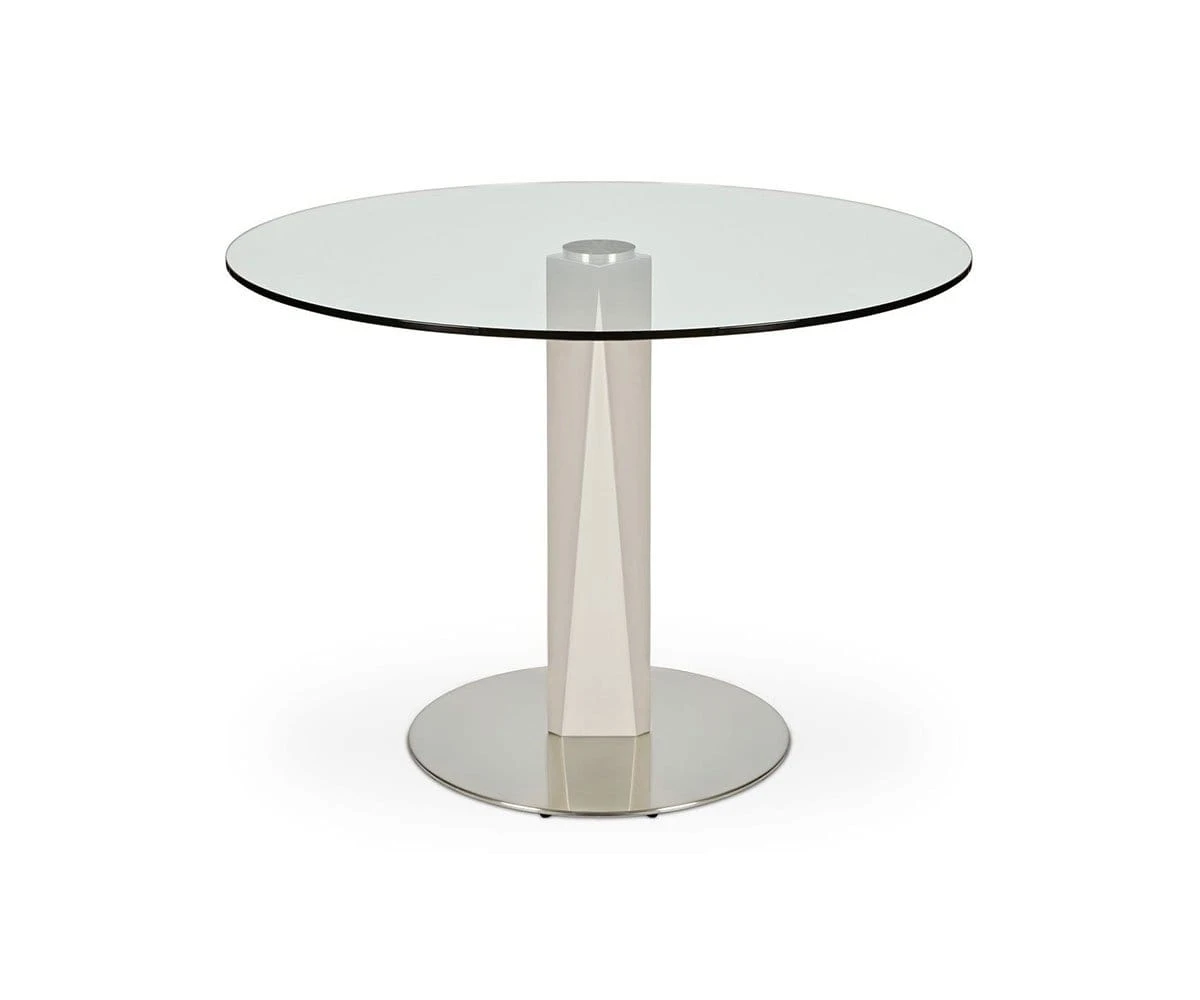 Get in on the cutting-edge of design with the Vispa Round Dining Table. Clear tempered glass tabletop and a smooth, chiseled stainless steel base hint at the future. Streamlined and unique, dress up your dining area in style and comfortably seat four.