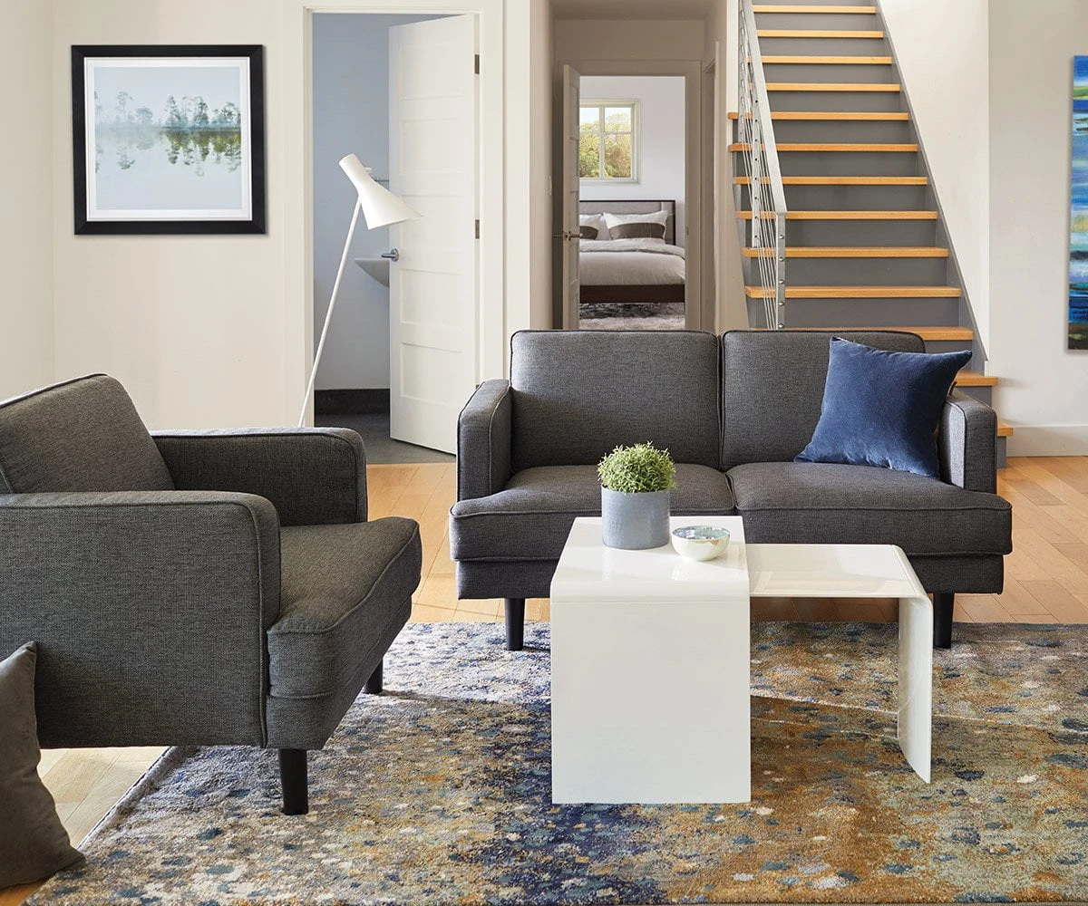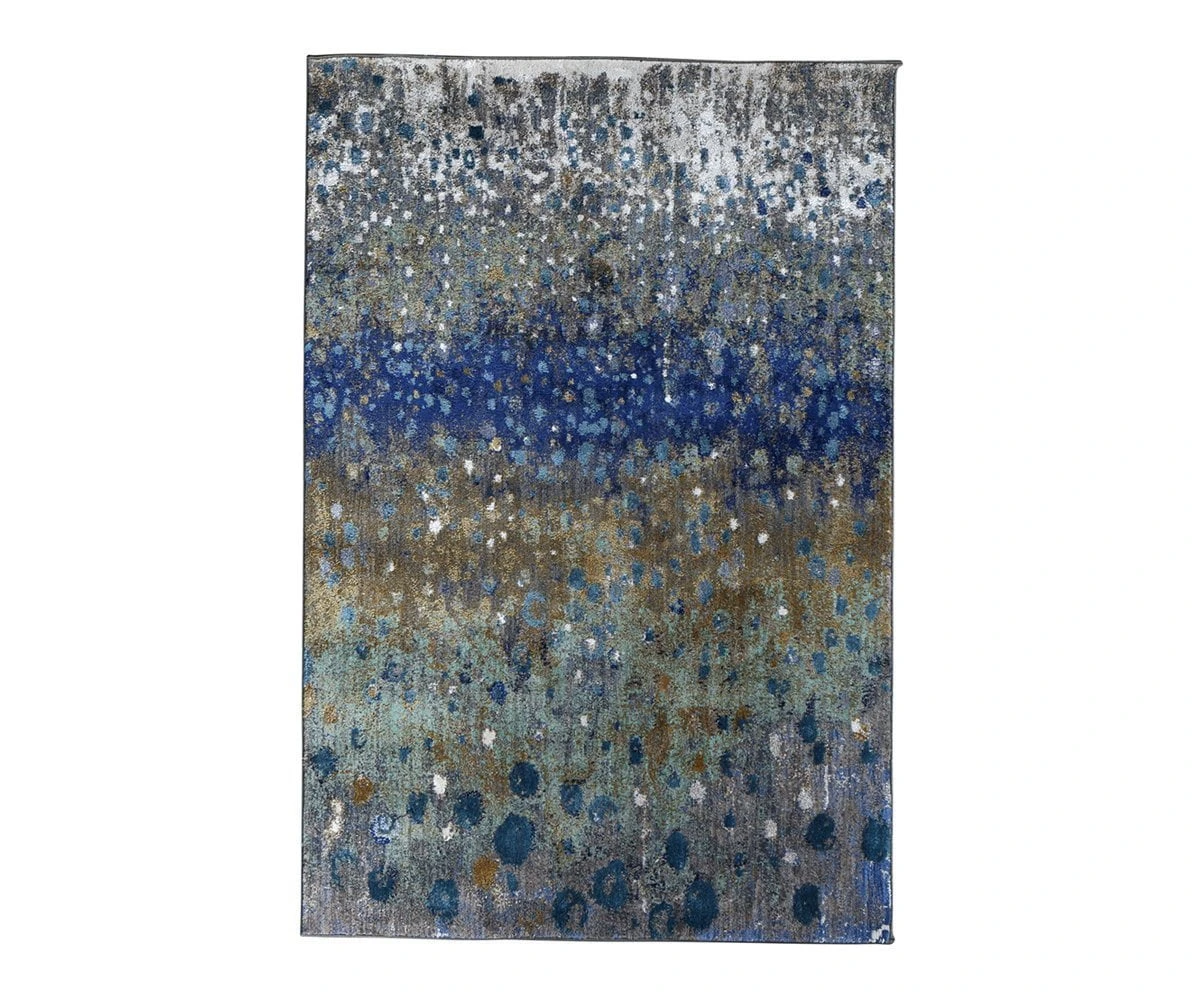 The Torrent Desert Rug brings a unique organic vibe to your space. Like an impressionist painting, the layered pattern in tones of blue and brown allow one to imagine an expansive desert landscape at dusk. This eco-friendly floor covering is made in the USA from recycled plastic bottles that go through a patented transformation process to create strong, yet soft yarn. The result is a stunning rug, pleasing to the touch that provides superior durability and stain resistance.