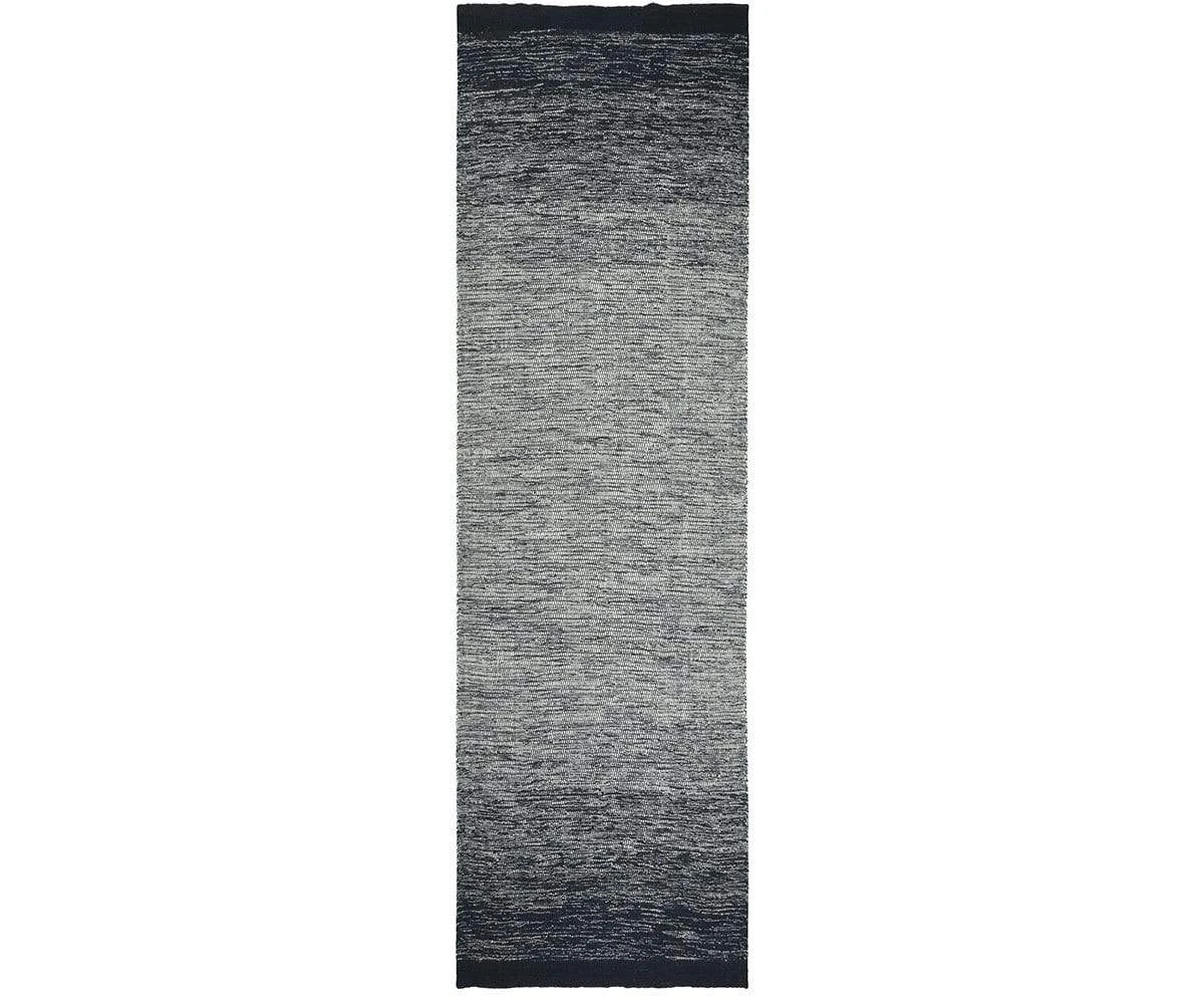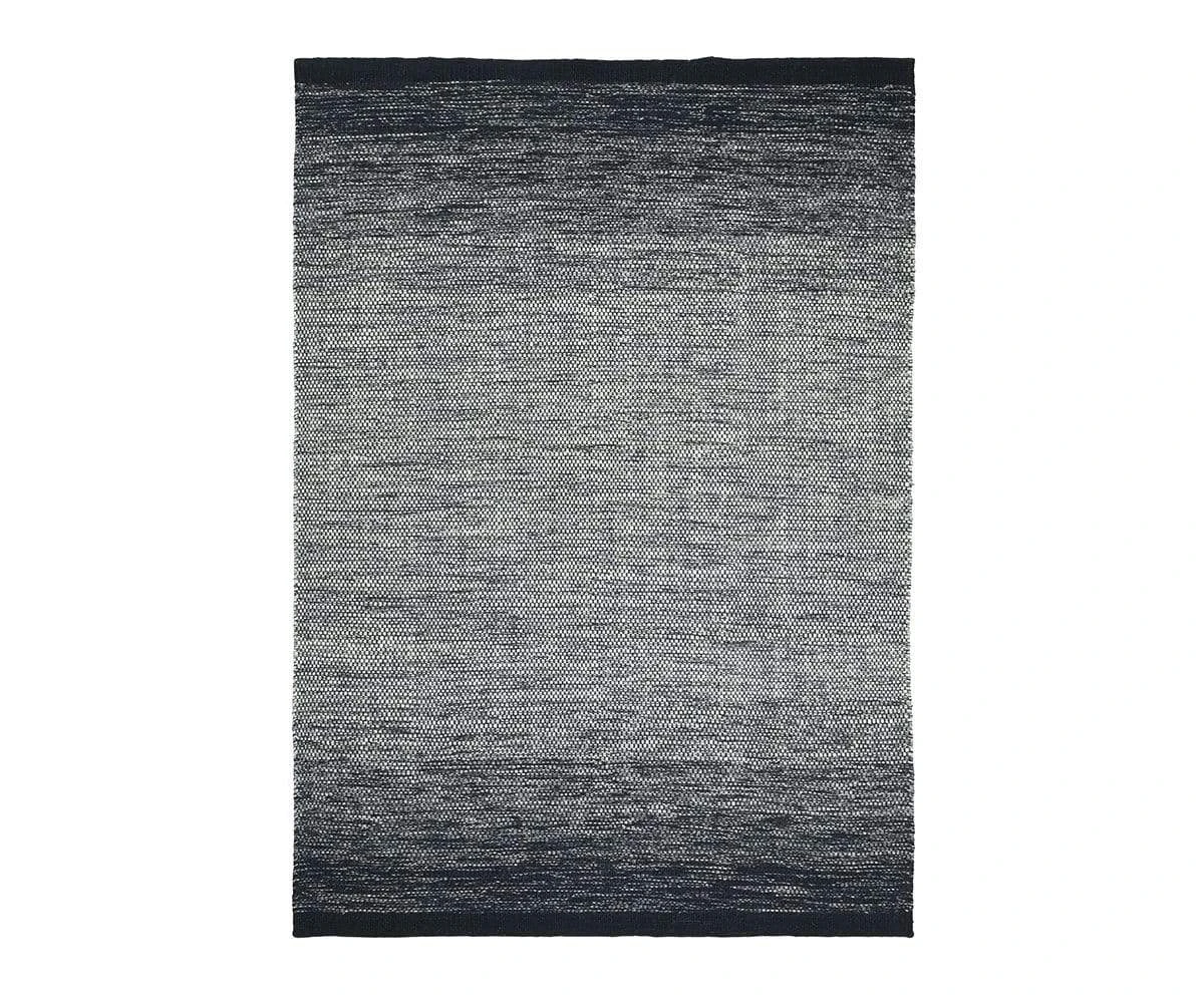 The Darvi Rug features a textured blend of wool and cotton. Artfully handwoven, this rug comes in shadowy tones of black ombre. Darker outer tones slowly merge into lighter ones towards the center of this piece, creating a rug that is as artistic in its design as it is modern. Now available in multiple sizes, this rug can be chosen in a full size to complement an open floor plan and simultaneously enjoyed with a matching runner rug for a hallway or a bedside.
