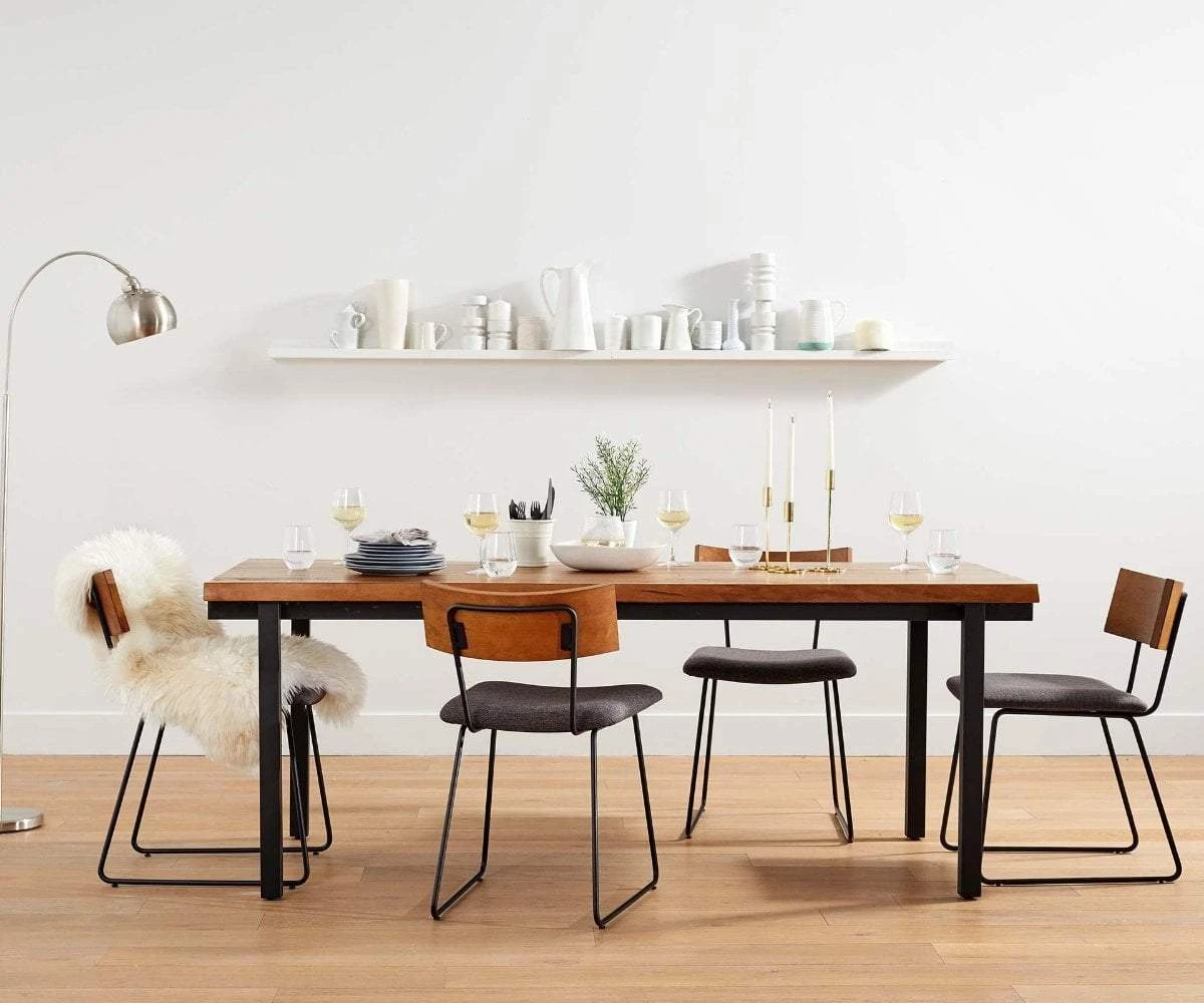 The traditional farm table meets rustic industrial style in the Karsten Dining Table. This elegant, hard-working table features powder-coated metal legs and supports, as well as a solid poplar “live-edge” top. Ensure a place for all your guests with this lovely addition.