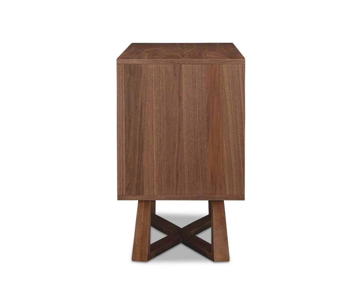 The Oliver Sideboard is sure to be a highlight in your dining room at every meal. The angled and crossed base paired with the smooth finish and gorgeous wood grain pattern give this piece a mid-century modern feel. A compact overall footprint makes this a great choice for smaller spaces while the shelved behind each door provide plenty of space to organize all of your entertaining essentials.
