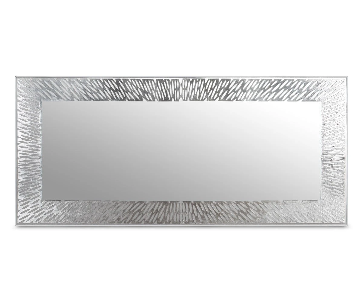 The Foveo Mirror is a statement piece featuring a silver patterned border for visual interest. Display it on any large wall to visually open a room and create light within your space.