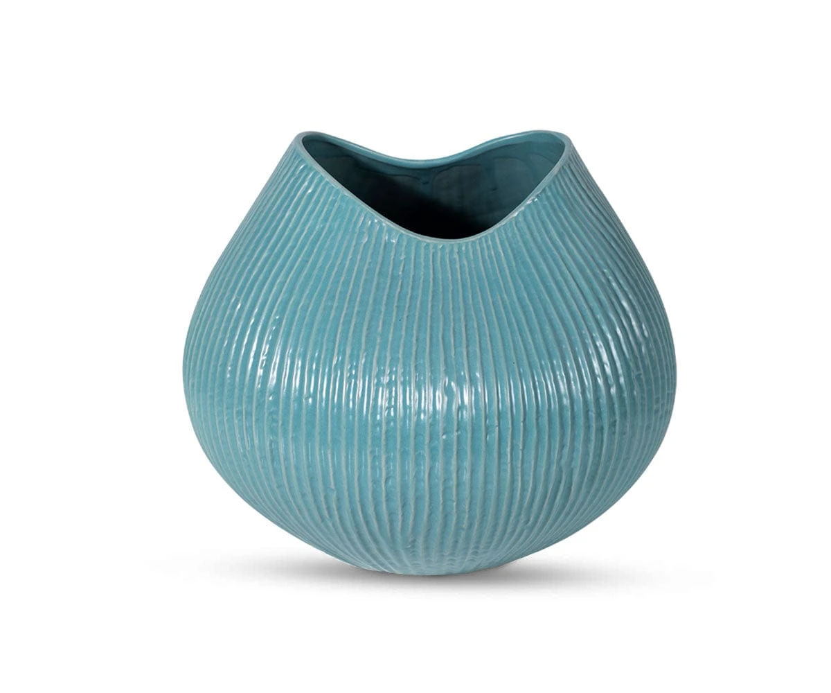 Add a light decorator’s touch to your living space with the lovely Efla Ceramic Vase. This piece instantly elevates your table, counter space, mantle or book shelves. This decorative vase is strikingly organic in form, with intricate textural ridges that accentuate the curved design.