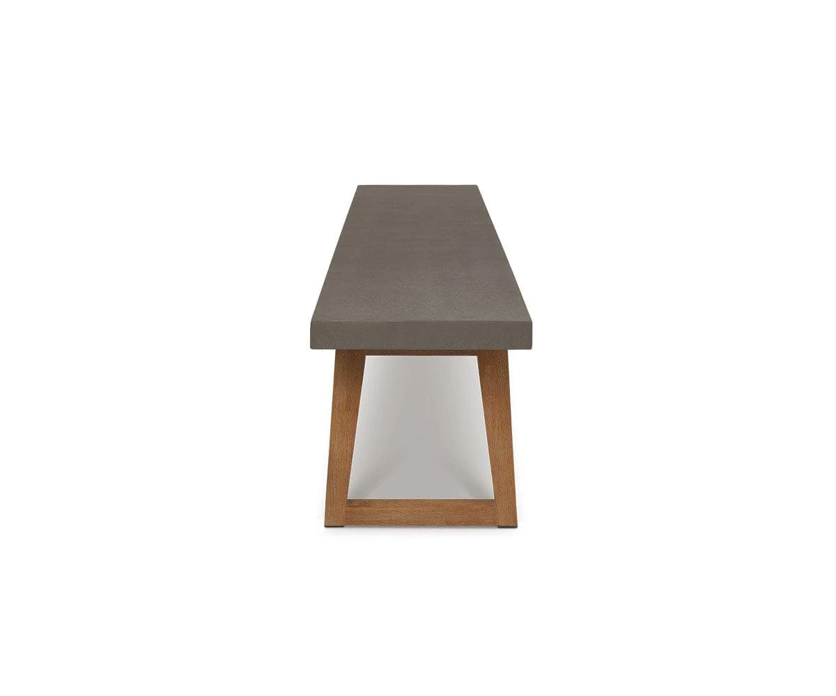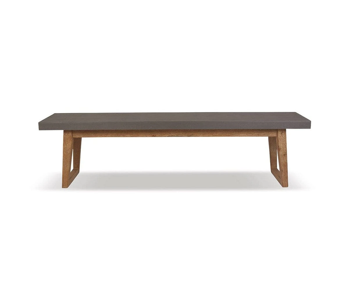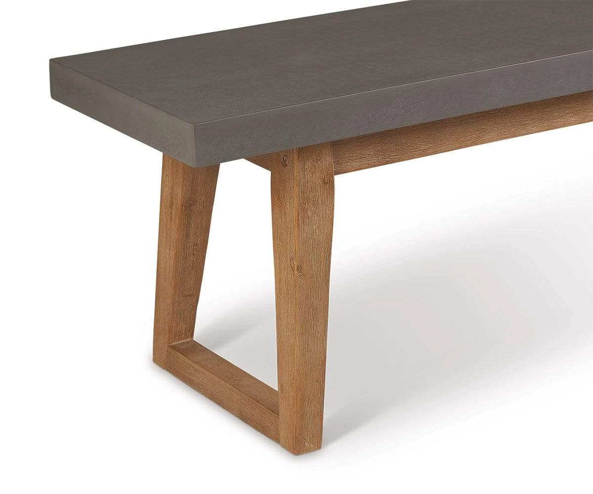 The elegant Atlas Dining Bench makes a smart addition to your dining set. With a solid acacia wood base and faux-cement composite tabletop, this piece provides durable yet lightweight performance.