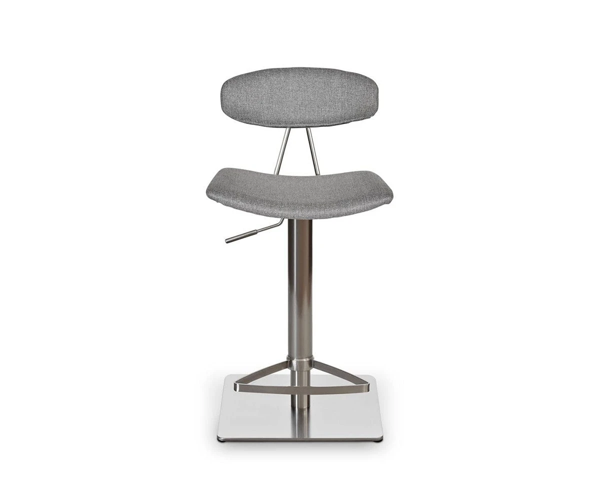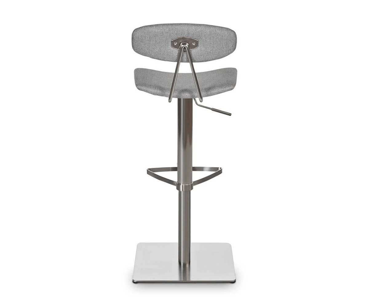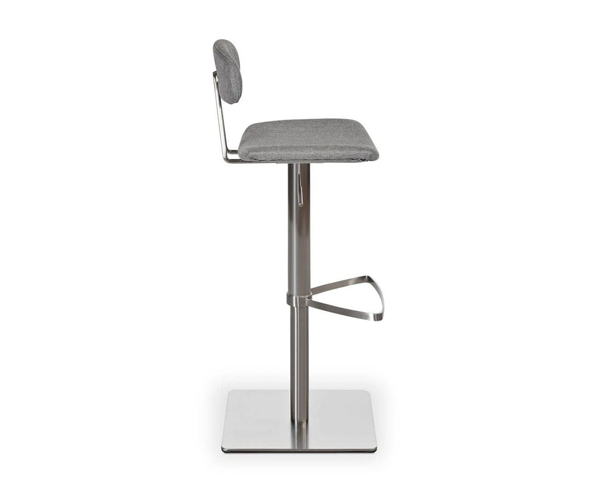State-of-the-art design makes the Lena Adjustable Counter and Bar Stool a show-stopper for your bar area. The seat and back, upholstered in a soft grey fabric, create an appealing textural contrast to the sleek brushed steel base. Adjustable height allows you to find the proper placement to rest easily as you eat, drink or socialize.