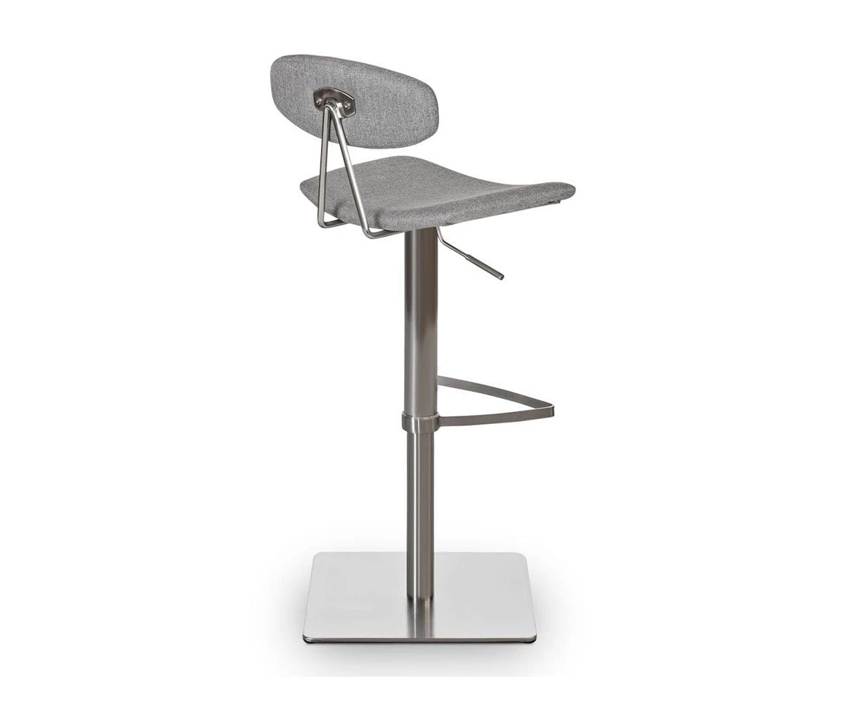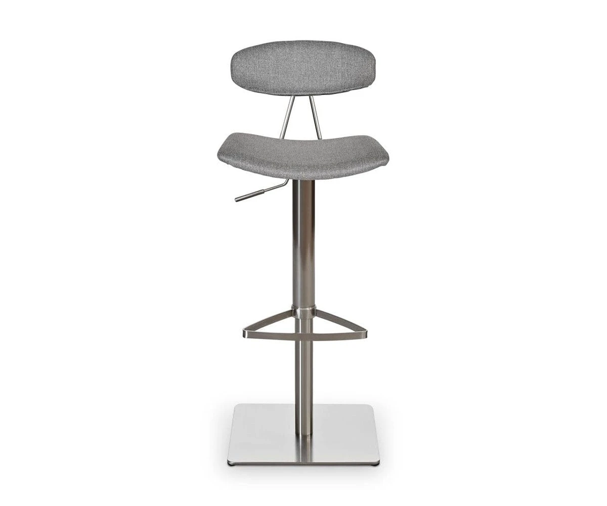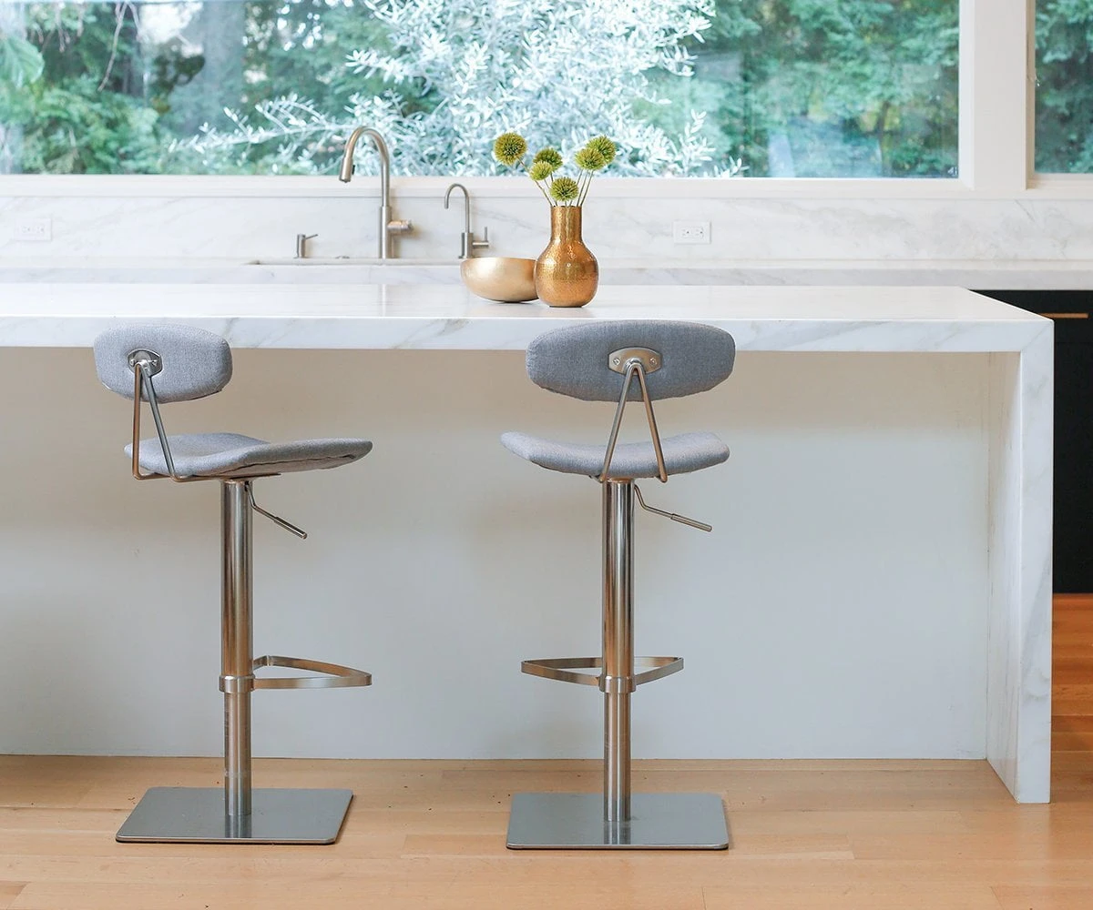 State-of-the-art design makes the Lena Adjustable Counter and Bar Stool a show-stopper for your bar area. The seat and back, upholstered in a soft grey fabric, create an appealing textural contrast to the sleek brushed steel base. Adjustable height allows you to find the proper placement to rest easily as you eat, drink or socialize.