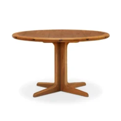The Evon Round Extension Dining Table is ideal for dinner parties, whether they’re intimate or extended. At just under four feet in diameter, the table is sizable without the leaves. It’s crafted from solid teak wood with a natural finish to highlight the wood grain. Two 20-inch leaves create space for more guests.