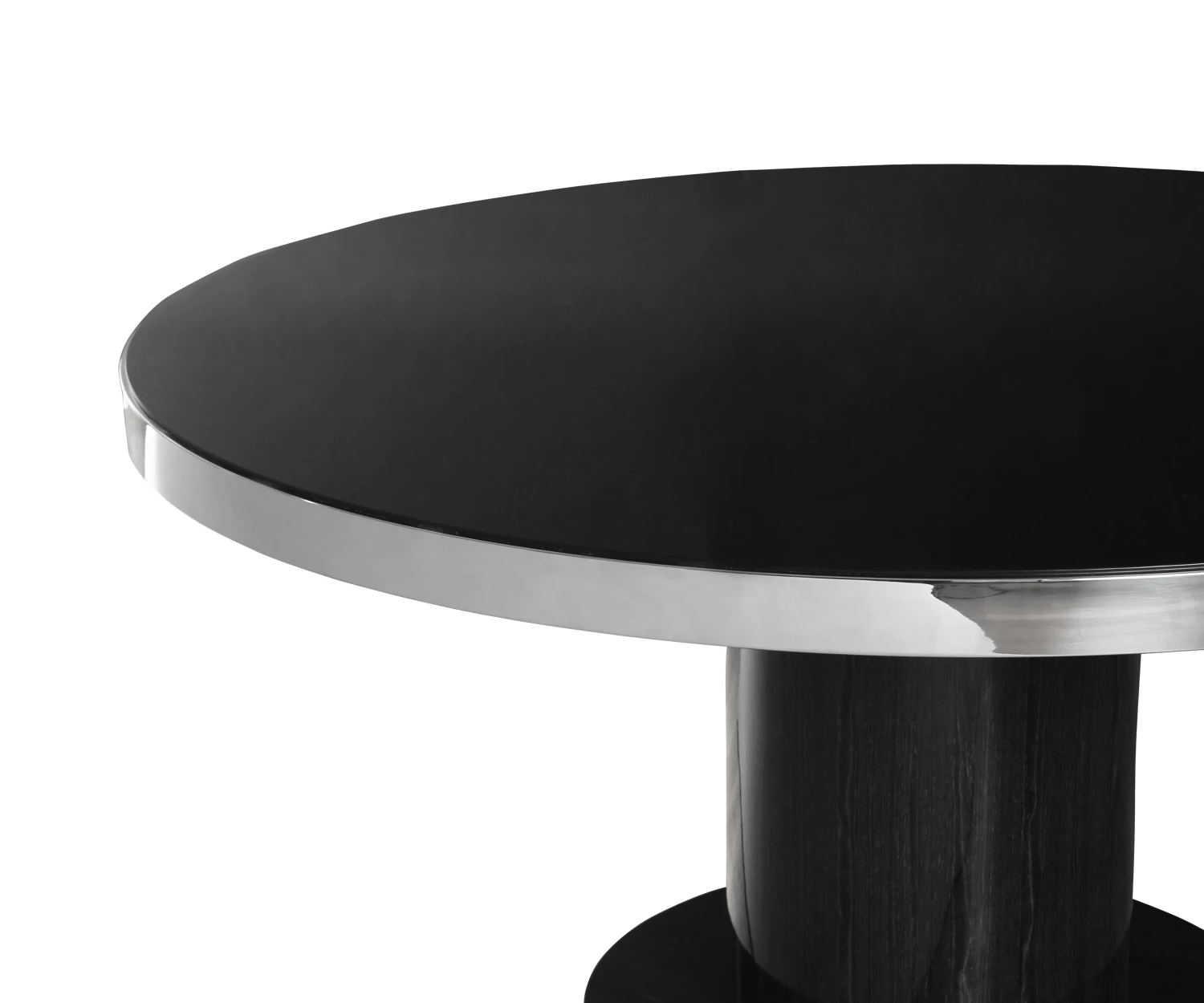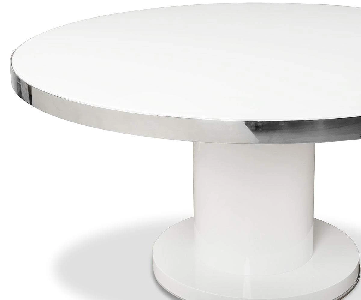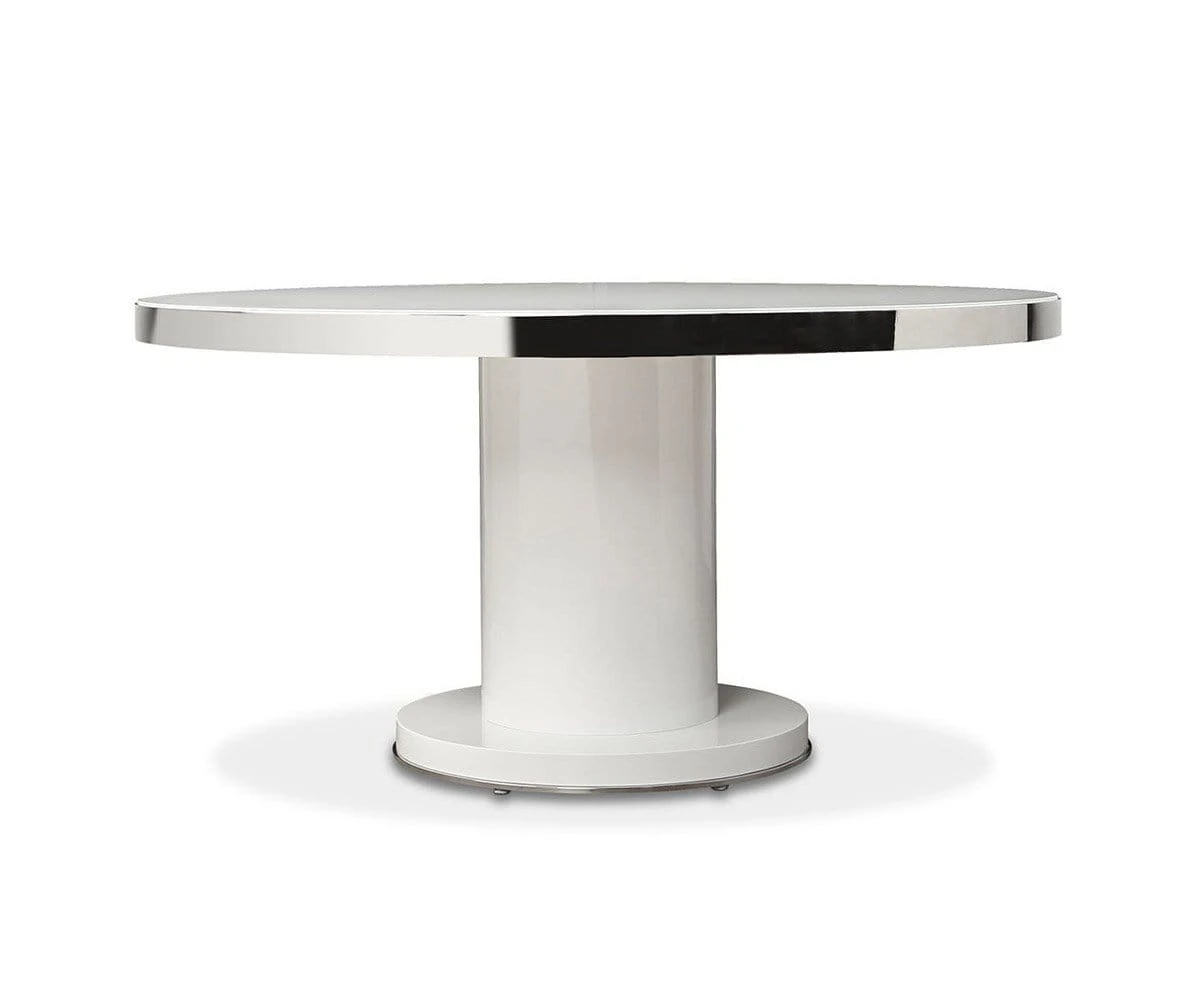 Sleek and bold, the Svante Round Dining Table is the true centerpiece of your dining room. In contemporary style, it features clean lines with stainless steel details and a high gloss finish. The impressive round pedestal base makes it stand out from the rest, ensuring you will enjoy elegant dining at home for years to come. Comfortably seats six.