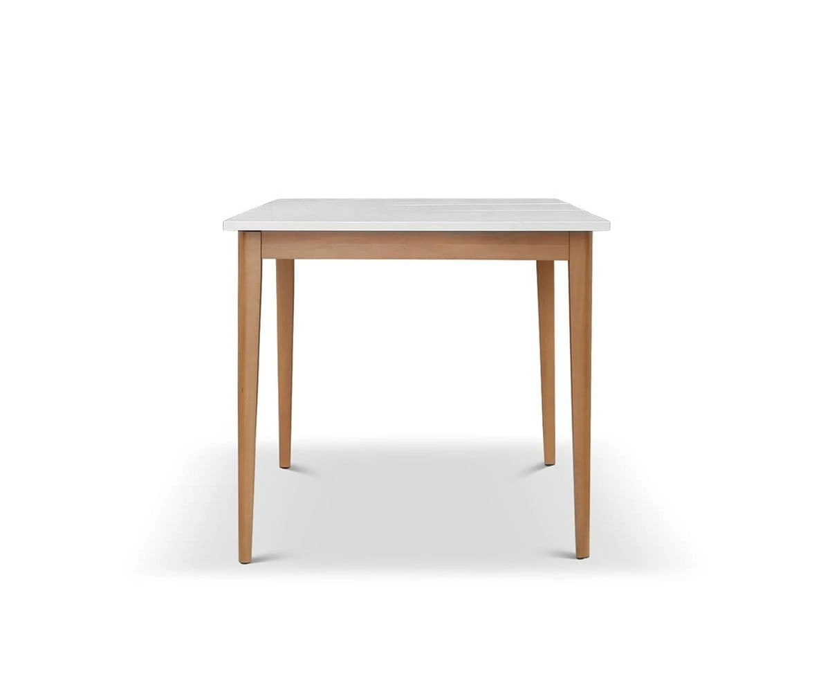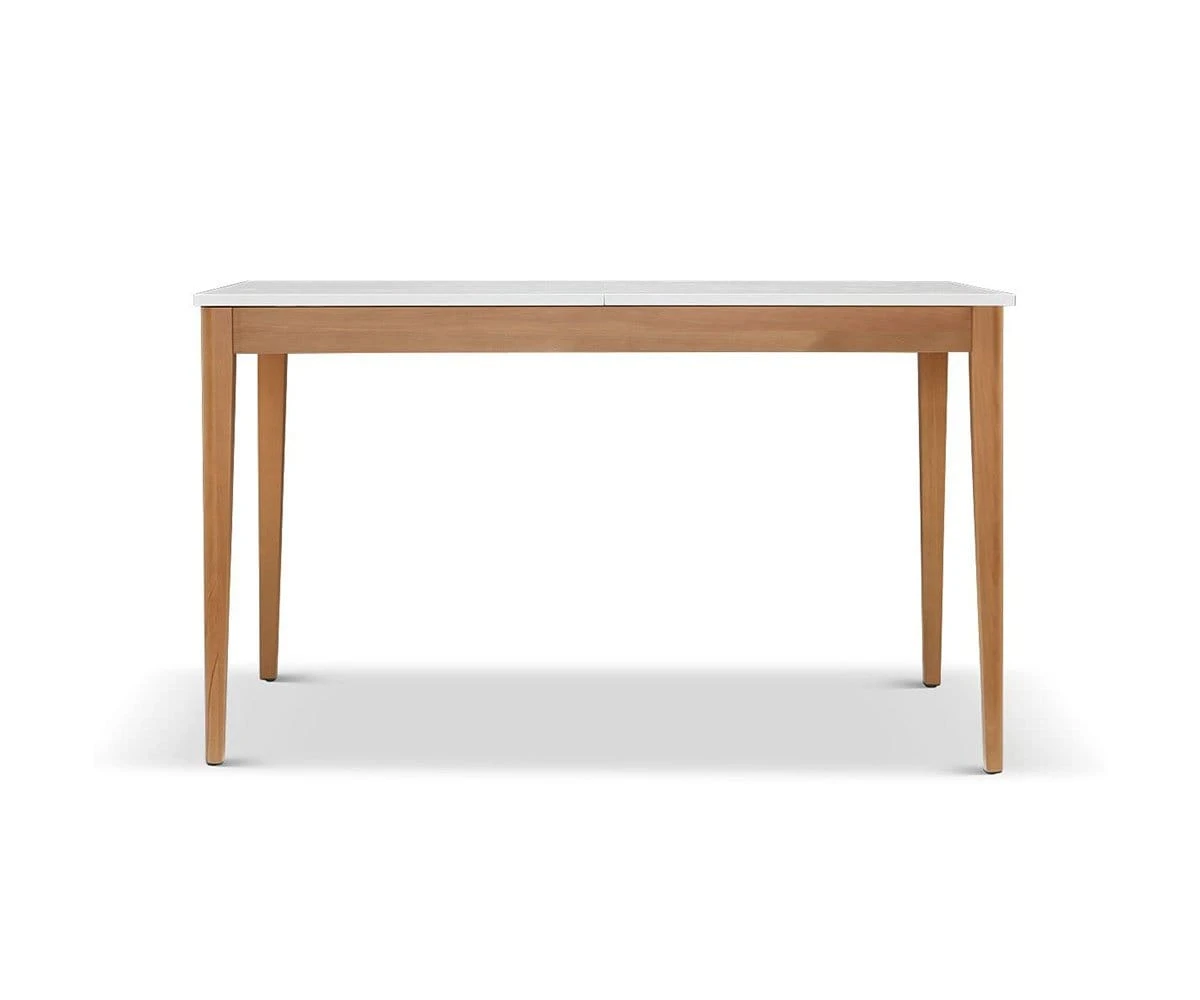 The Eptri Rectangular Extension Dining Table brings the minimalist elegance of Scandinavian design to your dining room. Tapered legs and a slim apron support the contrasting white table top for a unique two-tone look. Included extension leaves ensure plenty of space for surprise guests.