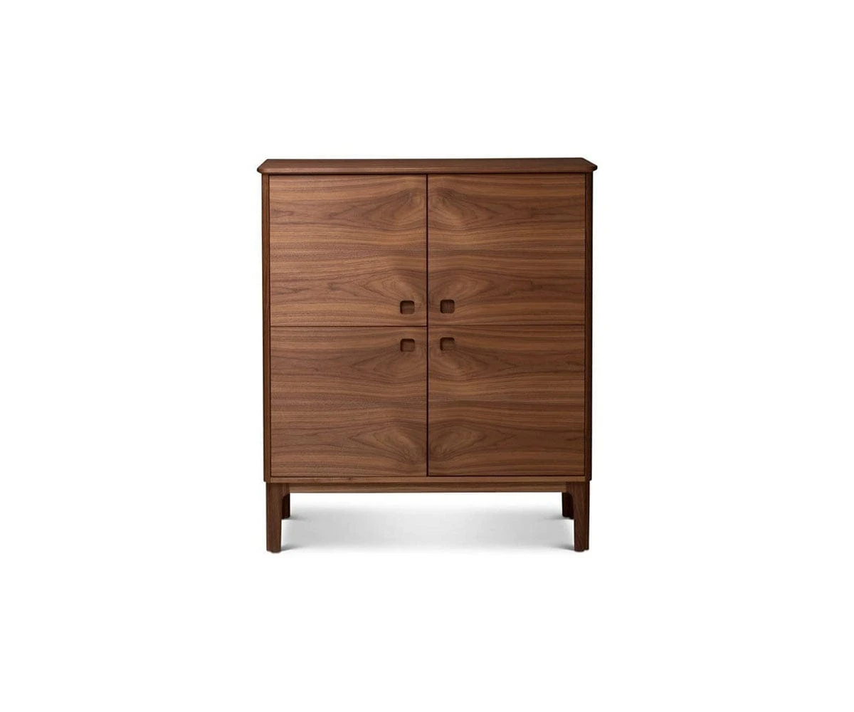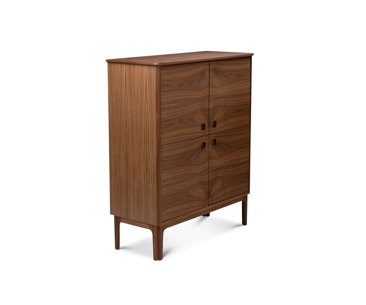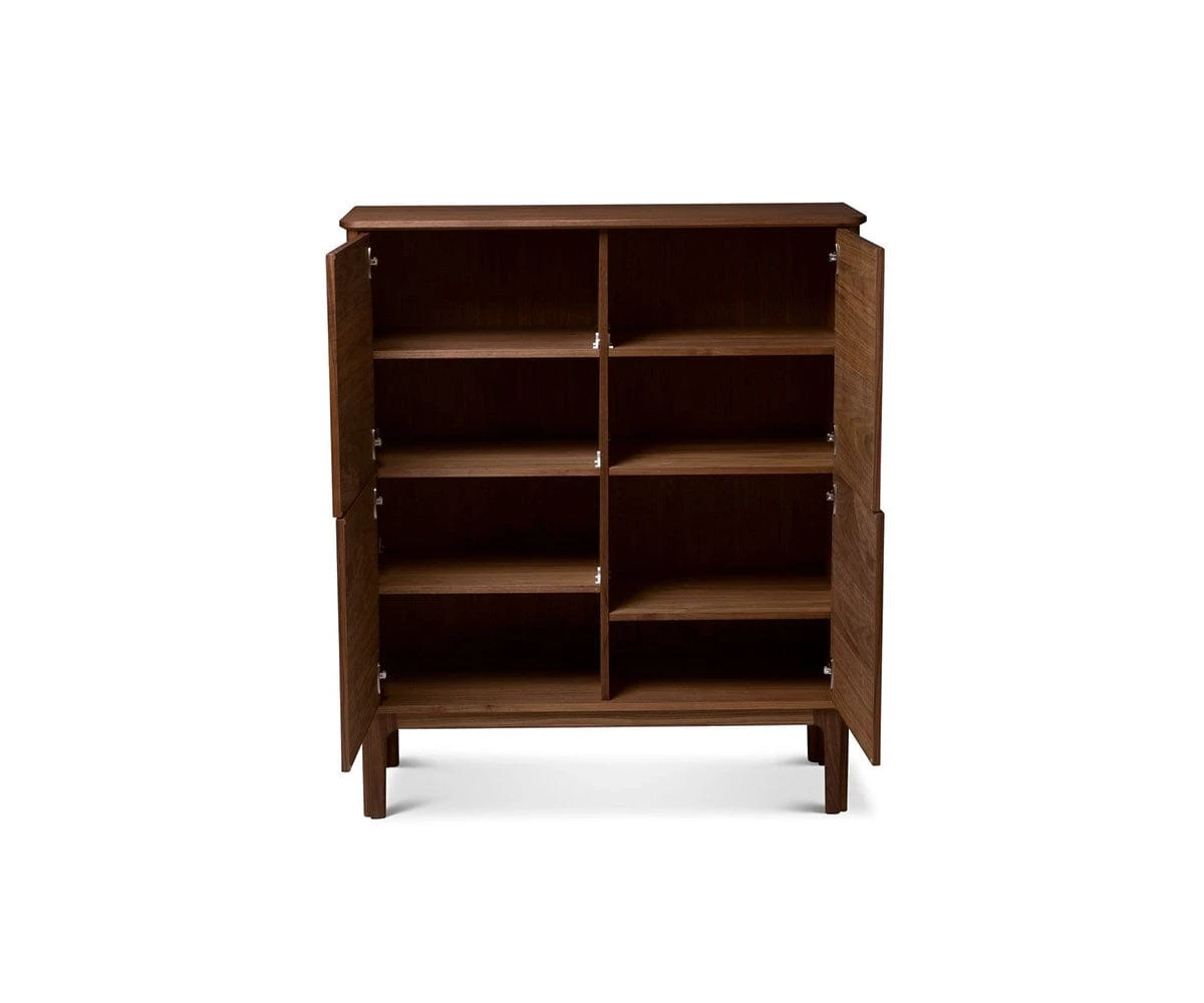 Made in Denmark, the Sundby 4-Door Cabinet is a versatile addition to your home decor. Four doors open to reveal ample shelf space for loads of items you need easy access to, but want to tuck neatly out of sight. The beautiful wood grain warms the room, while the timeless design makes a striking statement. Completed with legs in solid walnut, this piece will be a wonderful storage solution for years to come.