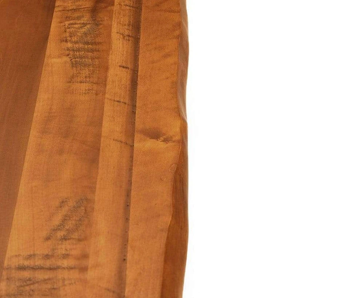 To enhance the rustic look of the wood, the surface of this piece is both intentionally distressed and cut with a smoothed live edge, making each piece one-of-a-kind.