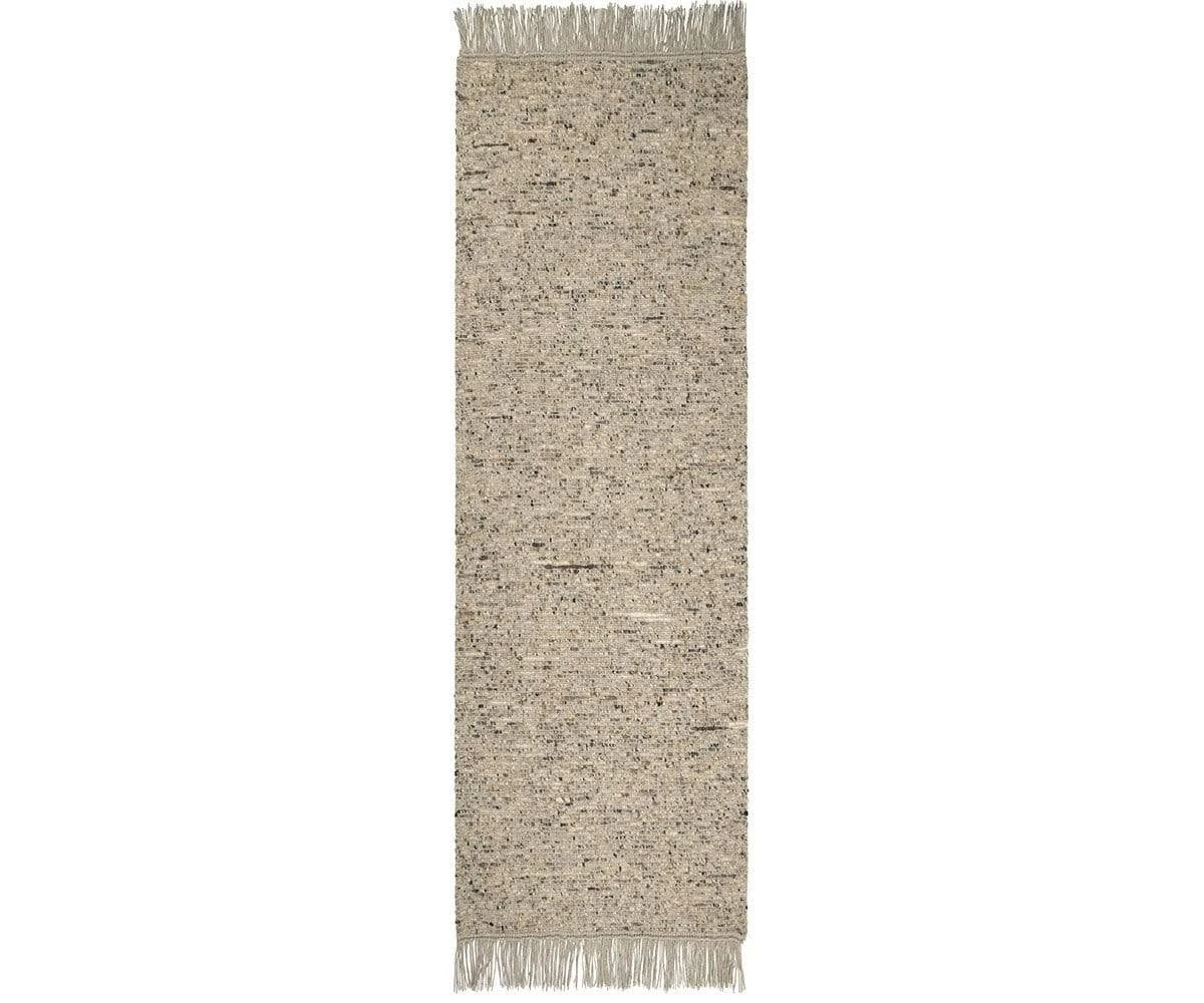 Accent your floorspace with the Danda Rug in beige. Blended light and dark tones of this soothing neutral meld together to create a rug that is pared-back in its design and classic in its style. These lovely rugs are now available in multiple sizes: choose a full-sized rug for an open floor plan and enjoy a matching runner rug for hallways or next to a bed.